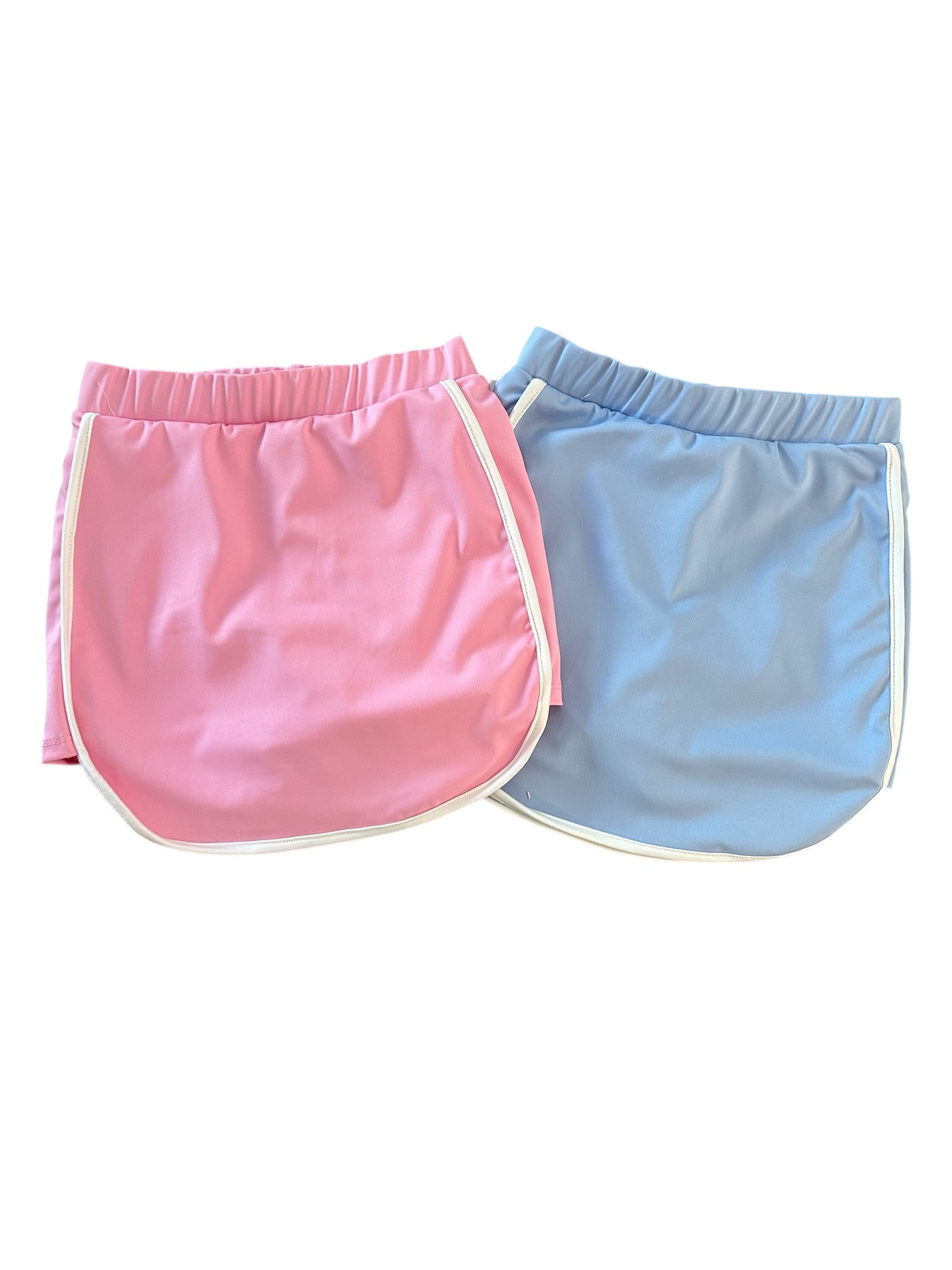 Made look like your fave high end brand, this tennis skort is TOO CUTE! Comes in two great colors, pink and blue, shorts built in and a fun white stripe down the hem. Pairs with matching top! Made in the USA.