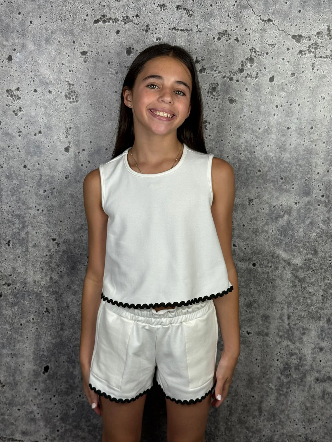 White with Black Ric Rac Lounge Top